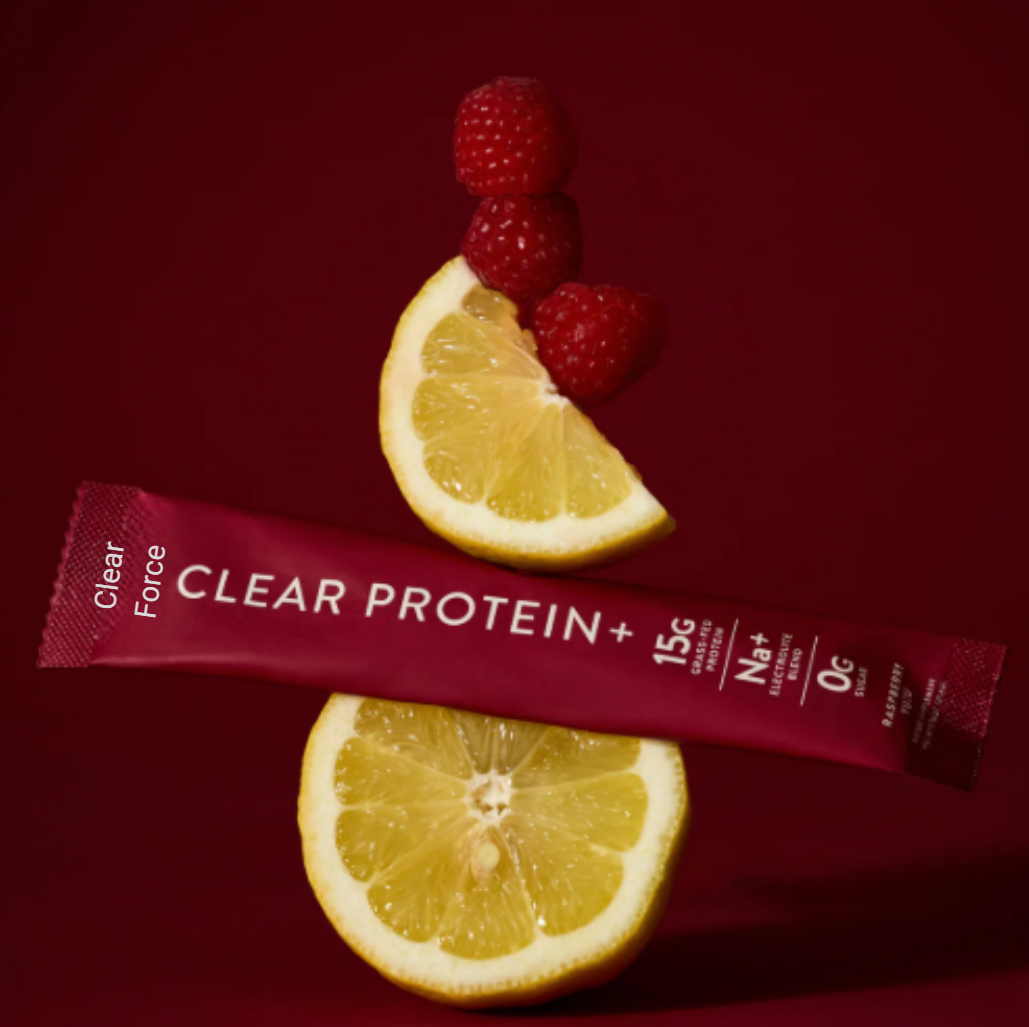 ClearForce Clear Protein+ is formulated with grass-fed whey protein isolate, collagen peptides, and essential electrolytes to support muscle recovery, hydration, and daily performance—without the heaviness of traditional protein shakes.